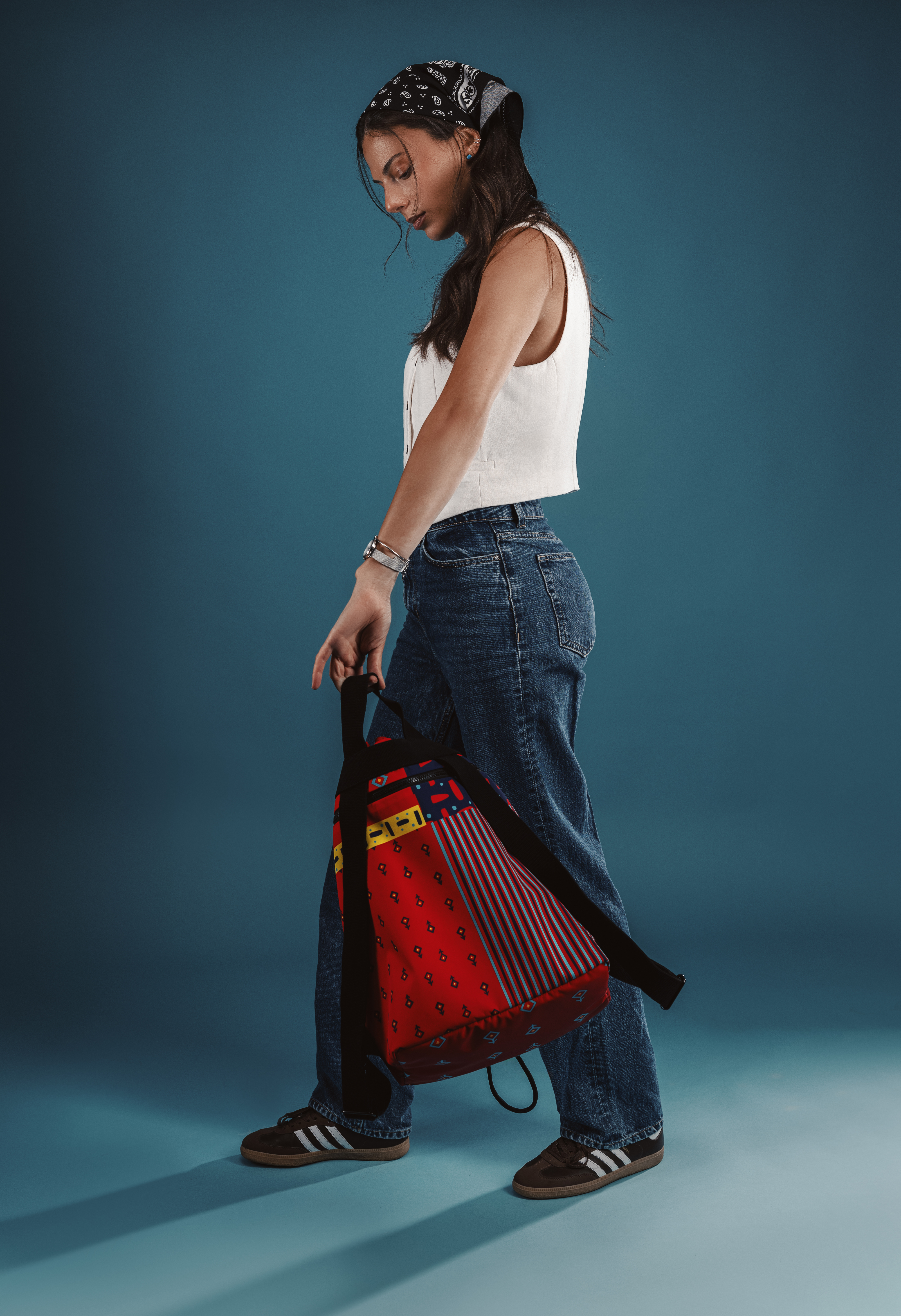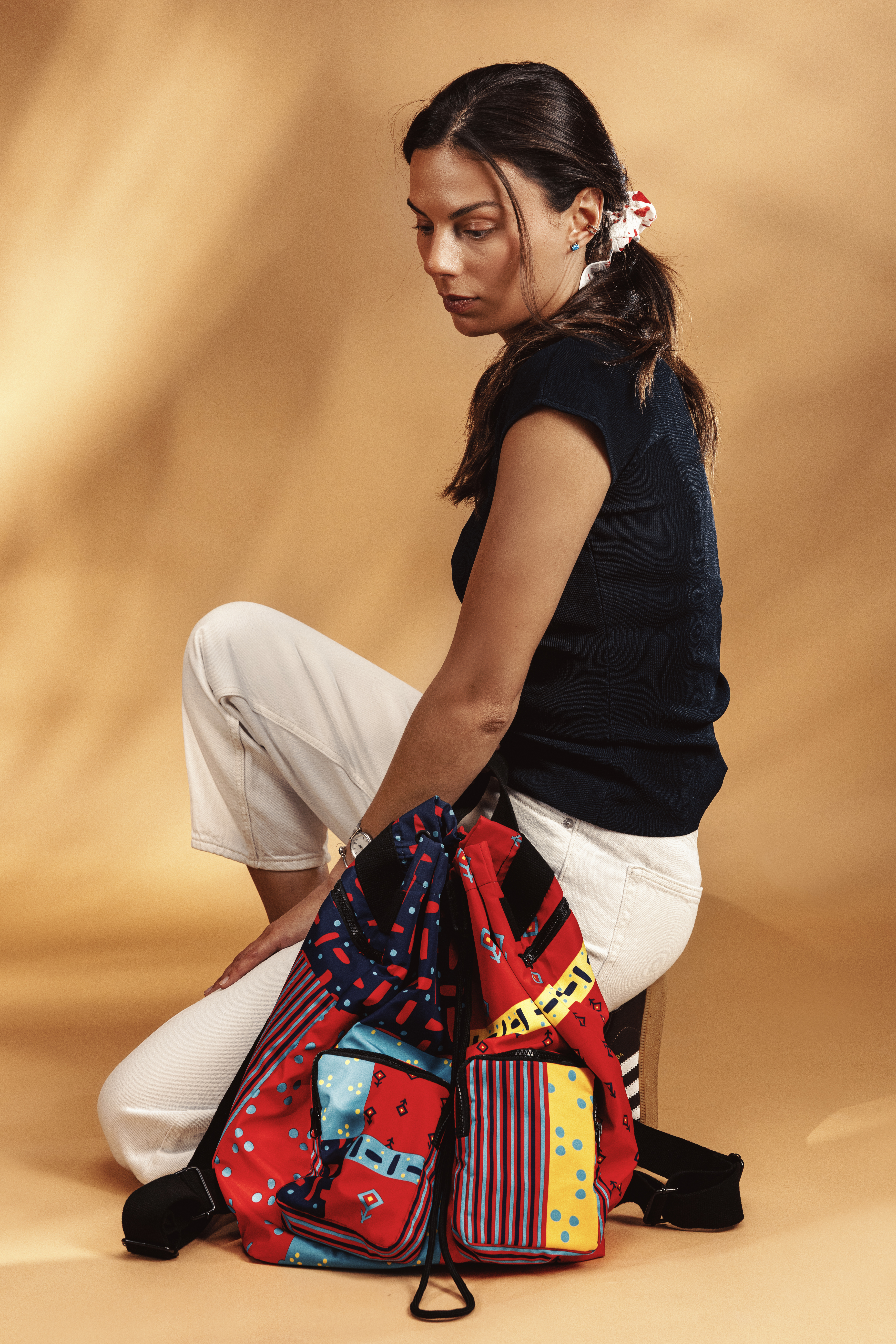 ზურგჩანთა, რომელიც ტრადიციას ქალაქის რიტმთან აერთიანებს.