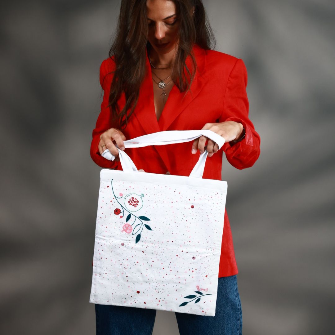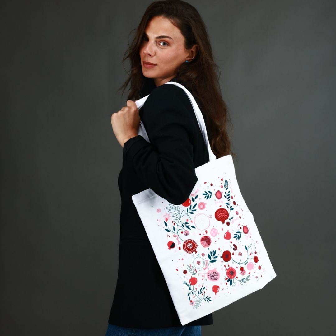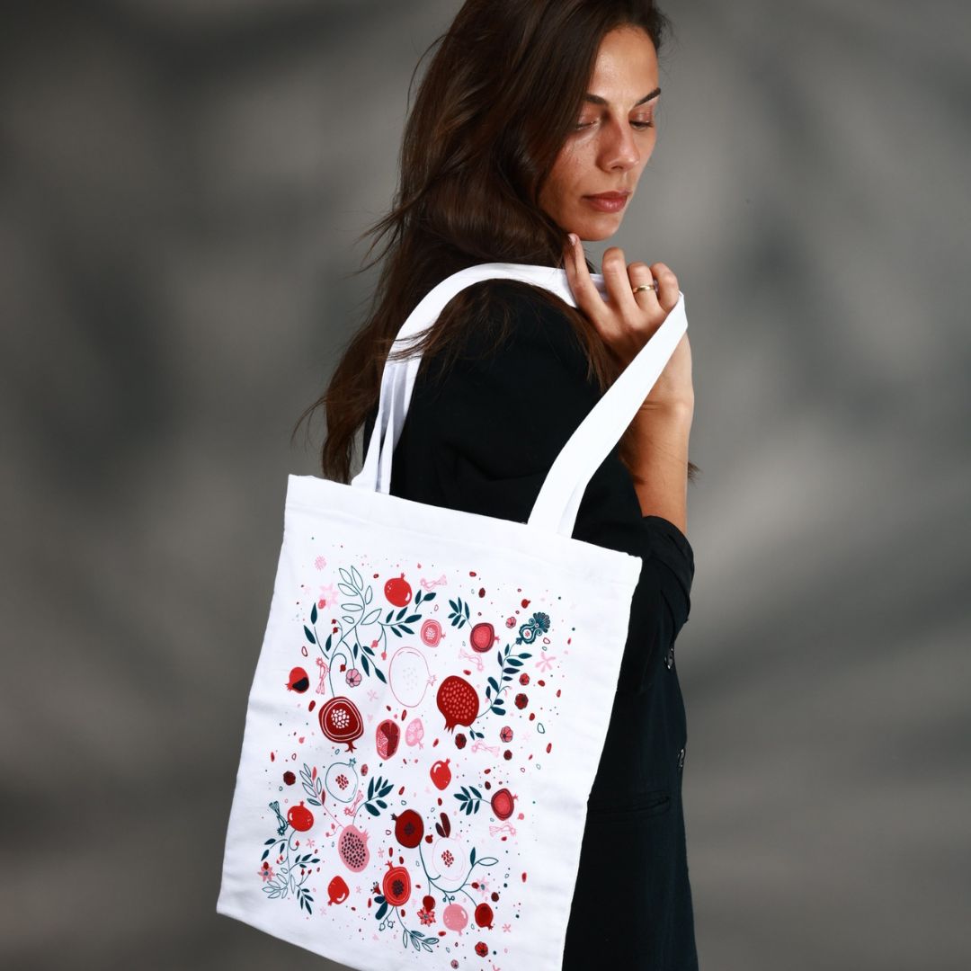 „ბროწეულების“ კოლექციაში, ჩანთის გარდა ერთიანდება: მაგიდის გადასაფარებელი, ხელსახოცი, რანერი, თავშალი, და წინსაფარი